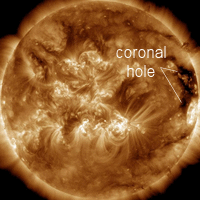 03 декабря в 14.// UTC пришел неоднородный ускоренный поток от корональной дыры,