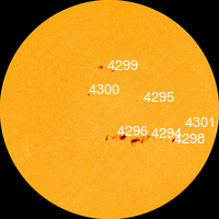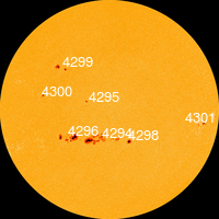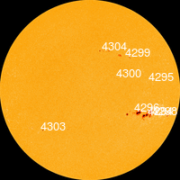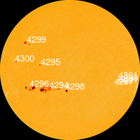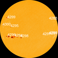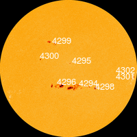 03 декабря в северной полусфере находилась активная группа пятен 4299 с площадью 140 МДП, числом пятен 15,