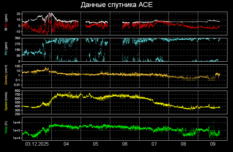 По данным КА ACE 03 декабря зарегистрирован переход солнечной секторной