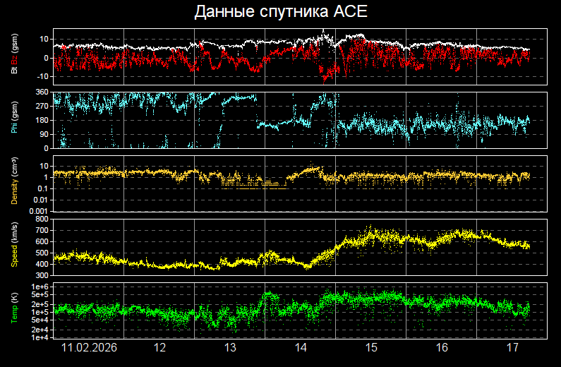 Далее скорость солнечного ветра начала снижаться и к 15.// UTC 14 февраля