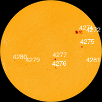 С 12 по 16 ноября в SW-квадранте находилась неактивная группа пятен 4277 с