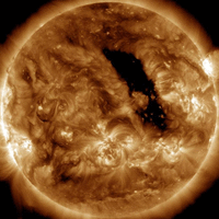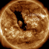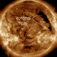19 октября в 05.// UTC пришел неоднородный ускоренный поток от корональной дыры и выброса
