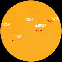 15 октября в южной полусфере находилась малоактивная группа пятен 4252 с площадью 100 МДП, числом пятен 2,