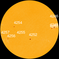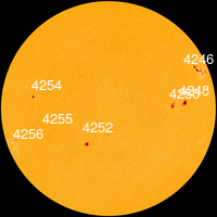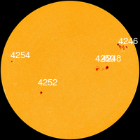 C 15 по 17 октября в северной полусфере находилась неактивная группа пятен 4250 с площадью 10 МДП, числом
