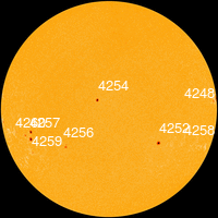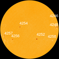 С 17 по 21 октября в SE-квадранте находилась малоактивная группа пятен 4257 с площадью 60-210 МДП, числом пятен 1-4, простой