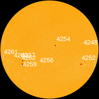 С 15 по 21 октября в северной полусфере находилась неактивная группа пятен 4254 с площадью 90-40 МДП,
