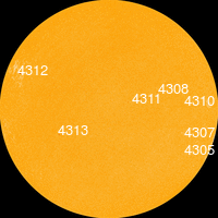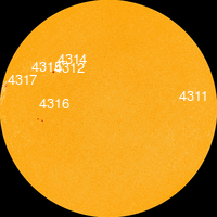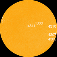 С 17 по 21 декабря в северной полусфере находилась малоактивная группа пятен 4311 с площадью 60-10 МДП,