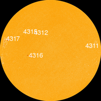 20 декабря в южной полусфере находилась активная группа пятен 4316 с площадью 40 МДП,