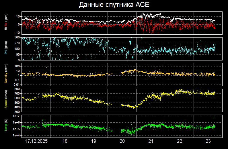 Затем скорость солнечного ветра начала уменьшаться и к 21.// UTC 20 декабря достигла значения 390 км/сек,