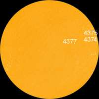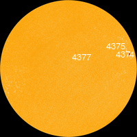 18 февраля в северной полусфере находилась малоактивная группа пятен 4377 с площадью 20 МДП, числом пятен 4,