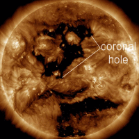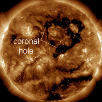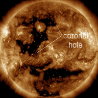 Третья сильноконтрастная протяженная корональная дыра отрицательной полярности в начале периода находилась в