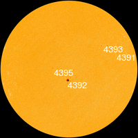 число пятен уменьшилось до 4. На следующие сутки площадь группы увеличилась до 210 МДП, число пятен до 15,