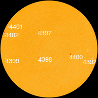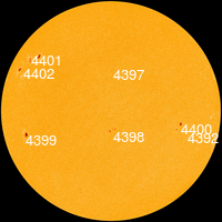 С 21 по 24 марта в SE-квадранте находилась малоактивная группа пятен 4399 с площадью 120-170 МДП, числом