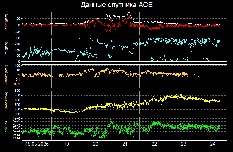 По данным КА ACE 20 марта зарегистрирован переход солнечной