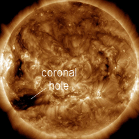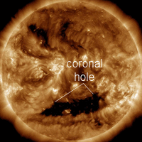 Четвертая экваториальная слабоконтрастная протяженная корональная дыра отрицательной полярности находилась