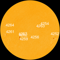 С 22 по 24 октября в SW-квадранте находилась неактивная группа пятен 4252 с площадью 110-100 МДП, числом