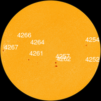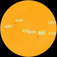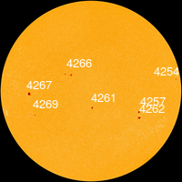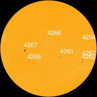 С 22 по 28 октября в южной полусфере находилась неактивная группа пятен 4261 с площадью 60-30 МДП,