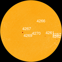 C 27 по 28 октября в SW-квадранте находилась неактивная группа пятен 4270 с площадью 10 МДП, числом пятен 5-3,