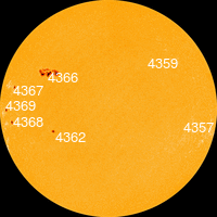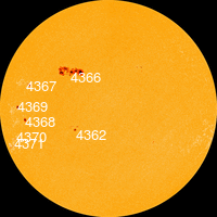 С 29 по 31 января в южной полусфере находилась активная группа пятен 4363 с площадью 20-30 МДП, числом пятен 3-1,
