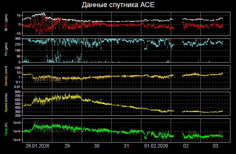 По данным КА ACE 03 февраля зарегистрирован переход солнечной