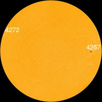 площадью 20-10 МДП, числом пятен 2-1, простой магнитной конфигурацией α.